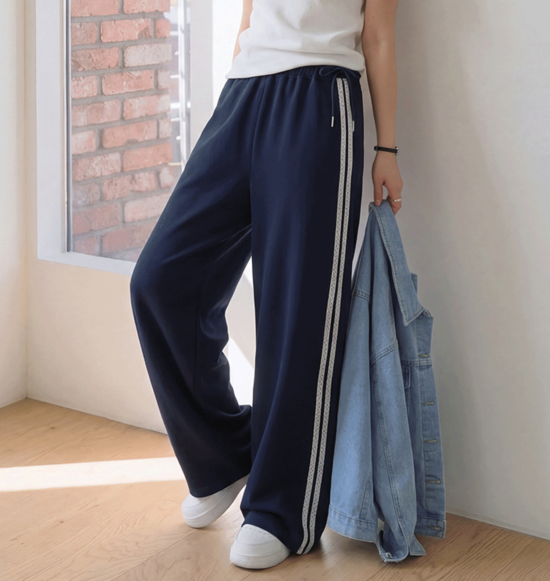 밑단 스트링이 더해져 조거핏으로도 연출가능