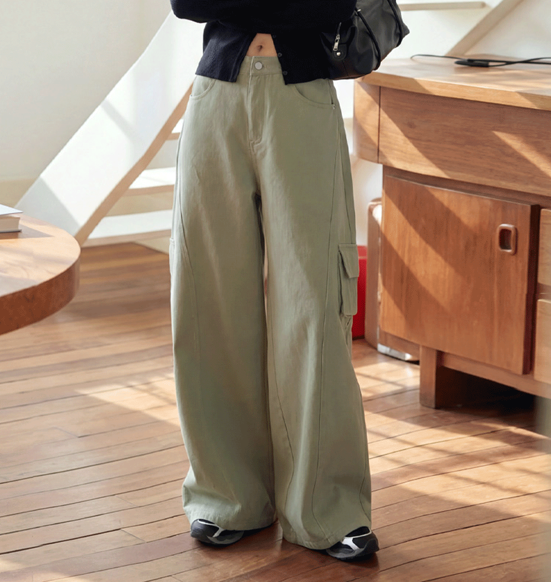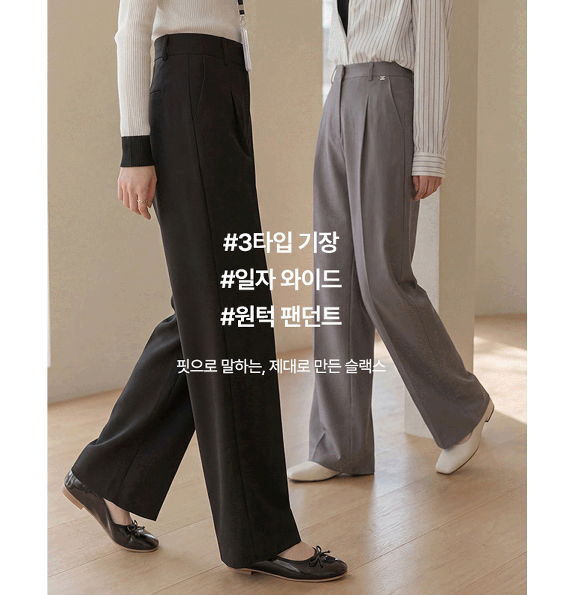 일자로 떨어지는 핏이 다리를 더 길어 보이게!