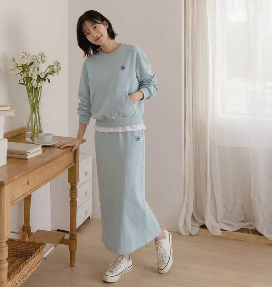[메르시마리에] GQ 레이어드 자수 맨투맨&스커트 세트 #96436