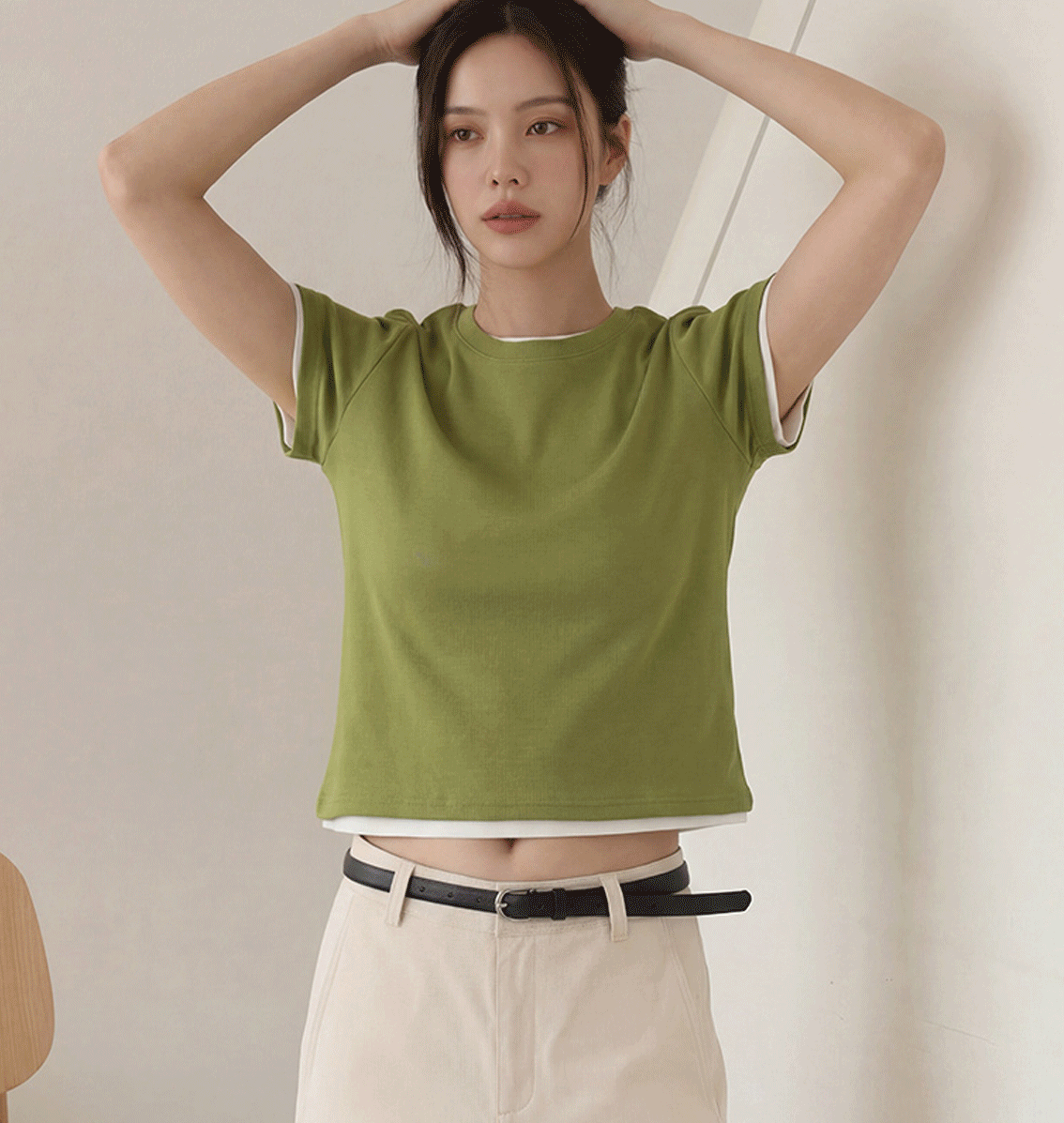 티셔츠를 레이어드한 듯한 디자인을 더해
