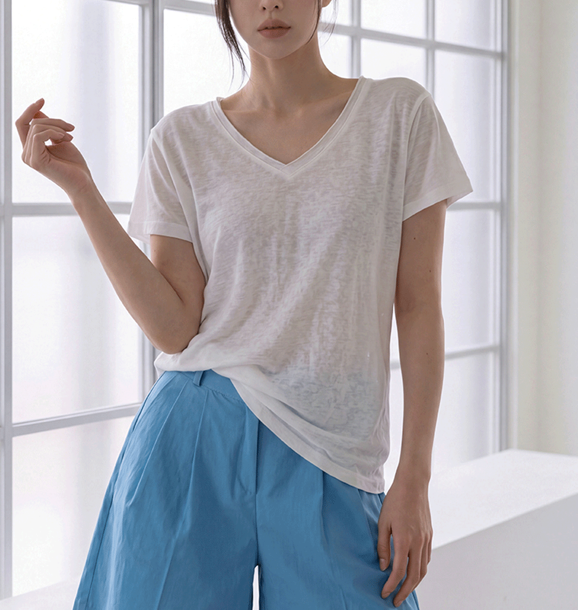 이탈리 코튼 V넥 니트 반팔티 #112441