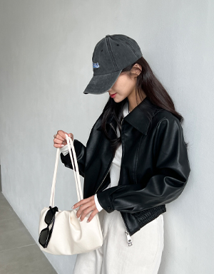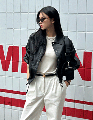 레더 반하이넥 시크 밴딩 자켓 #66691