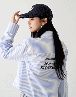 오픈 글로시 뒷 밴딩 세미크롭 셔츠 #49835