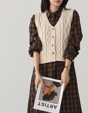 꽈배기 패턴 니트 베스트 #112543