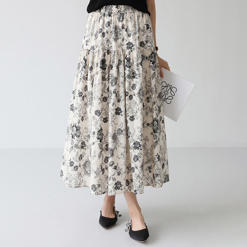 - 빈티지한 무드의 흑백 플라워 패턴이 돋보이는 스커트