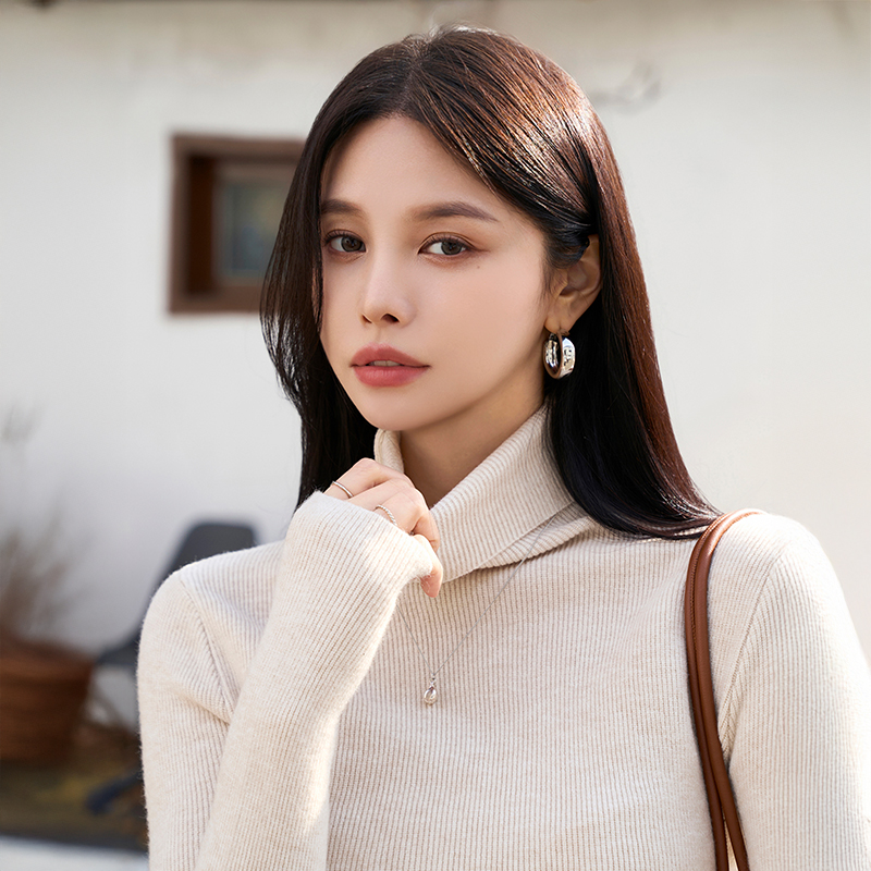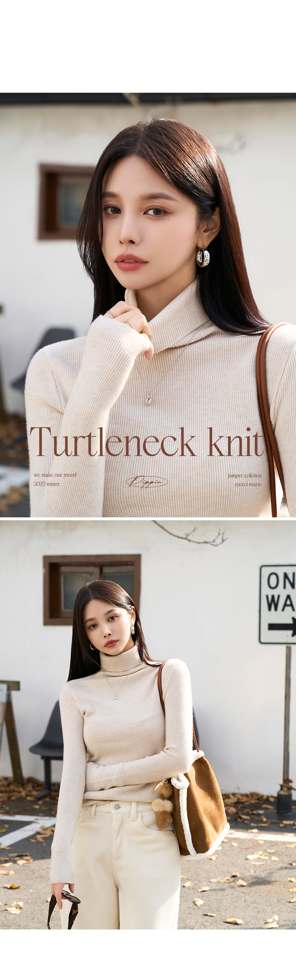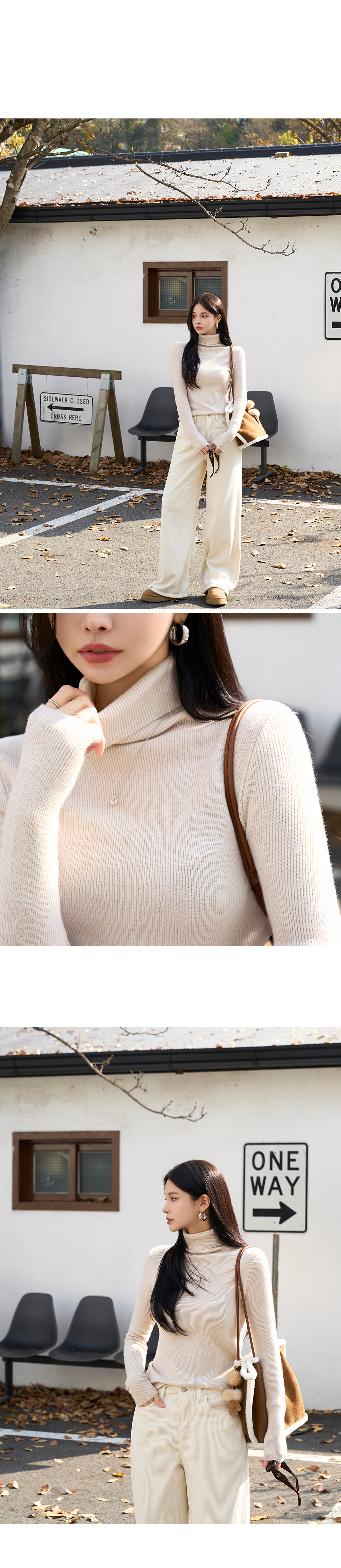 - 부드럽고 신축성 좋은 니트 소재로 따뜻하고 편안하게 착용 가능한 폴라넥 니트