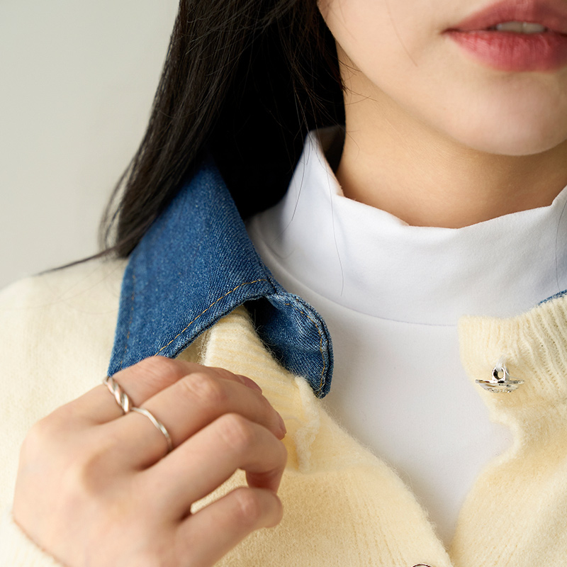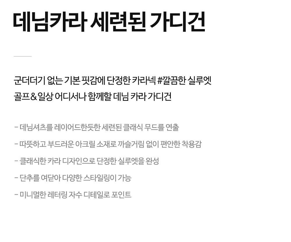 - 마치 레이어드한것 같이 데님카라가 붙어있어 세련된 무드가 느껴짐