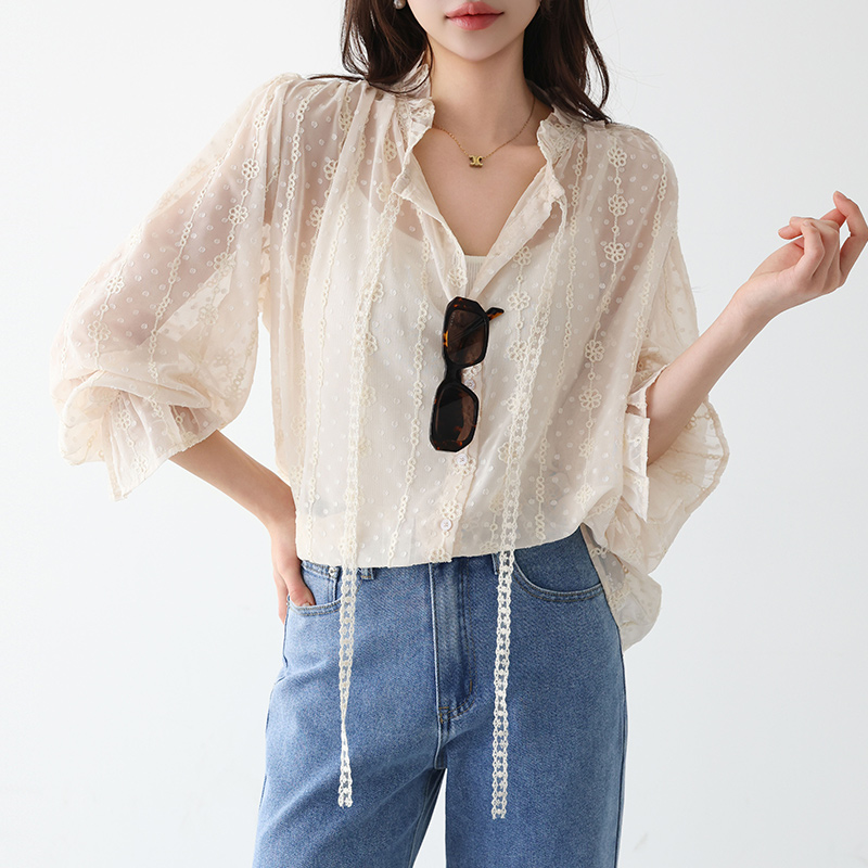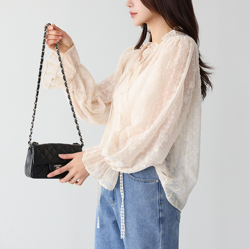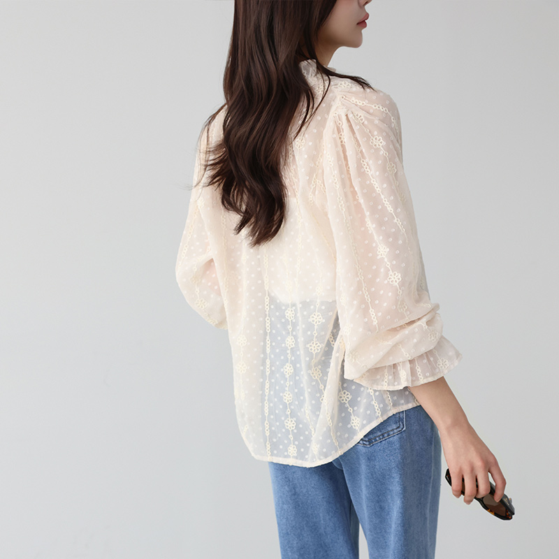 - 카라와 소매에 셔링 디테일로 고급스러운 무드 연출