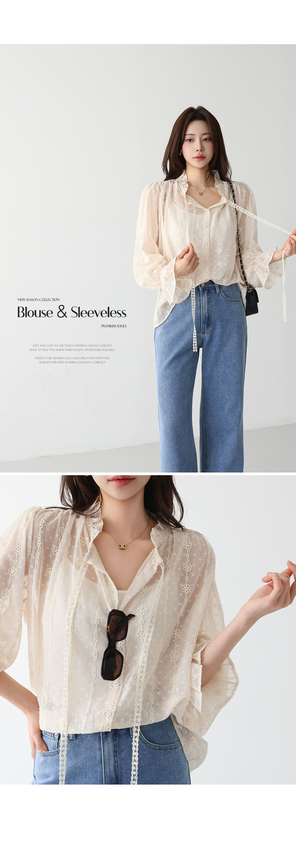 - 러블리한 플라워 패턴이 돋보이는 블라우스+나시 세트