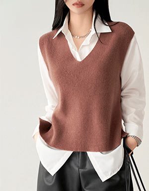 • [메르시마리에] 매듭 니트베스트 + 셔츠 세트 #49833