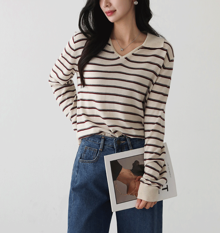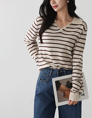 • 팬던트 스트라이프 카라 맨투맨 #112492