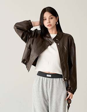 레더 반하이넥 시크 밴딩 자켓 #66691