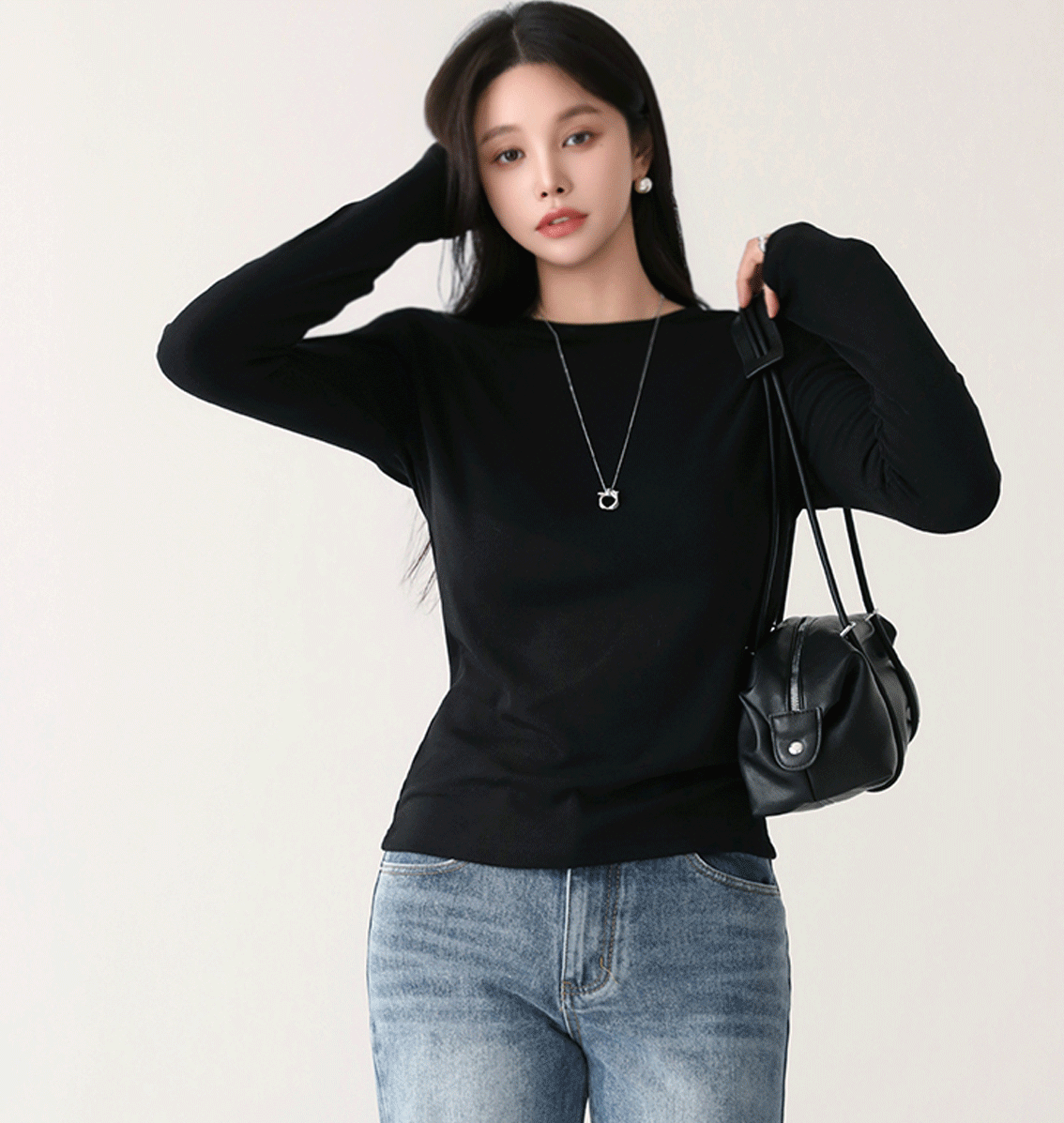 무지 기모 라운드 긴팔 티셔츠 #112818