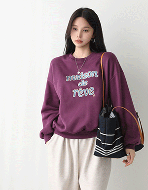 스마일 레터링 루즈핏 기모 맨투맨 #112792