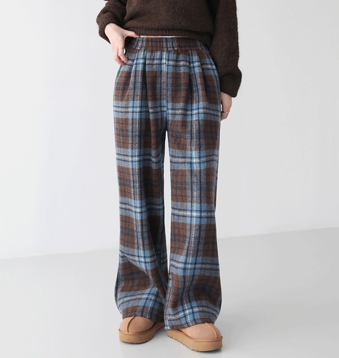 도톰 모직 체크 와이드 기모팬츠 #711068