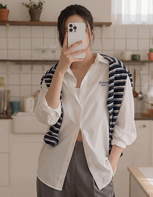 [메르시마리에] 시그니처 자수 코튼 셔츠 #49897