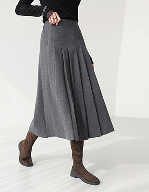 벨트세트)A라인 핀턱 미디스커트 #53487
