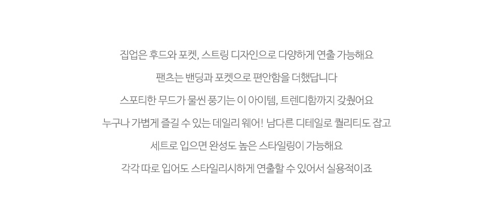- 하단의 스트링 디테일로 원하는 핏 조절 가능