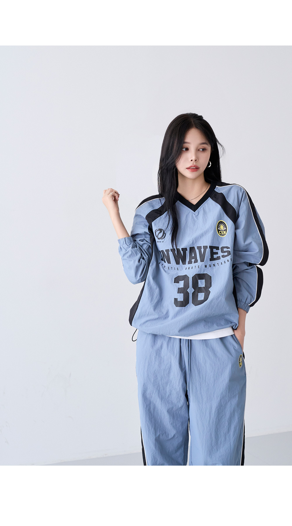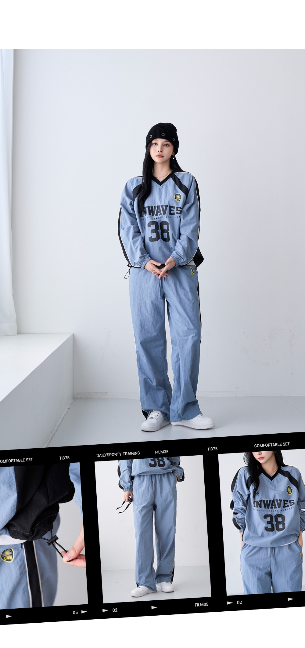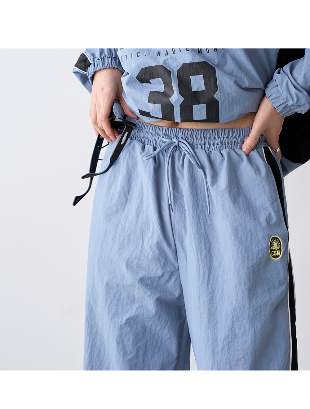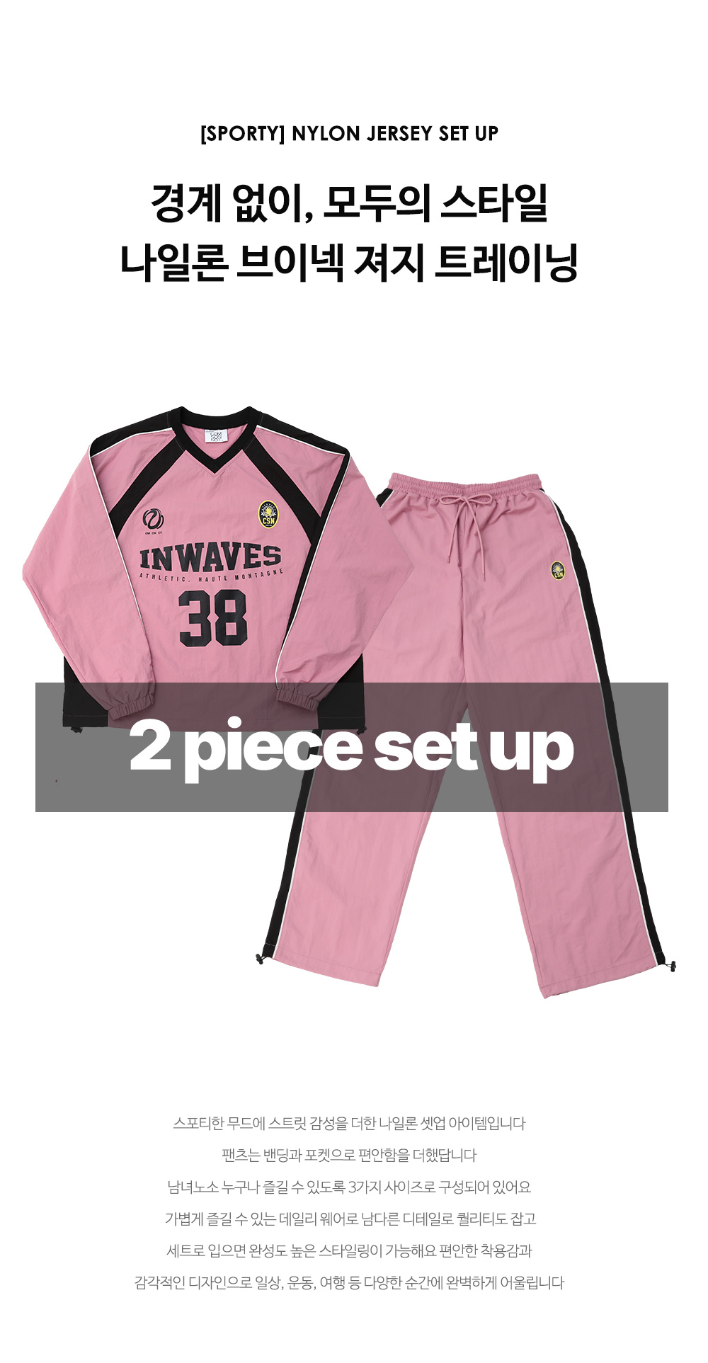 - 상하의 밑단 스트링으로 핏 조절이 가능해 다양한 스타일 연출