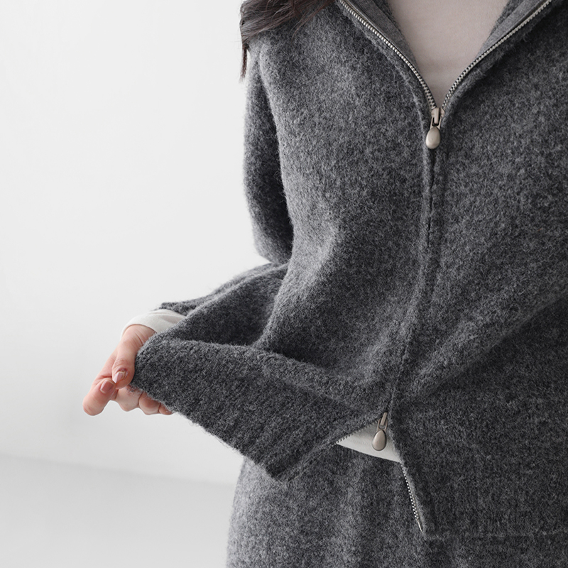 - 상의는 투웨이 집업 디자인으로 캐주얼하면서 따뜻한 분위기를 연출함