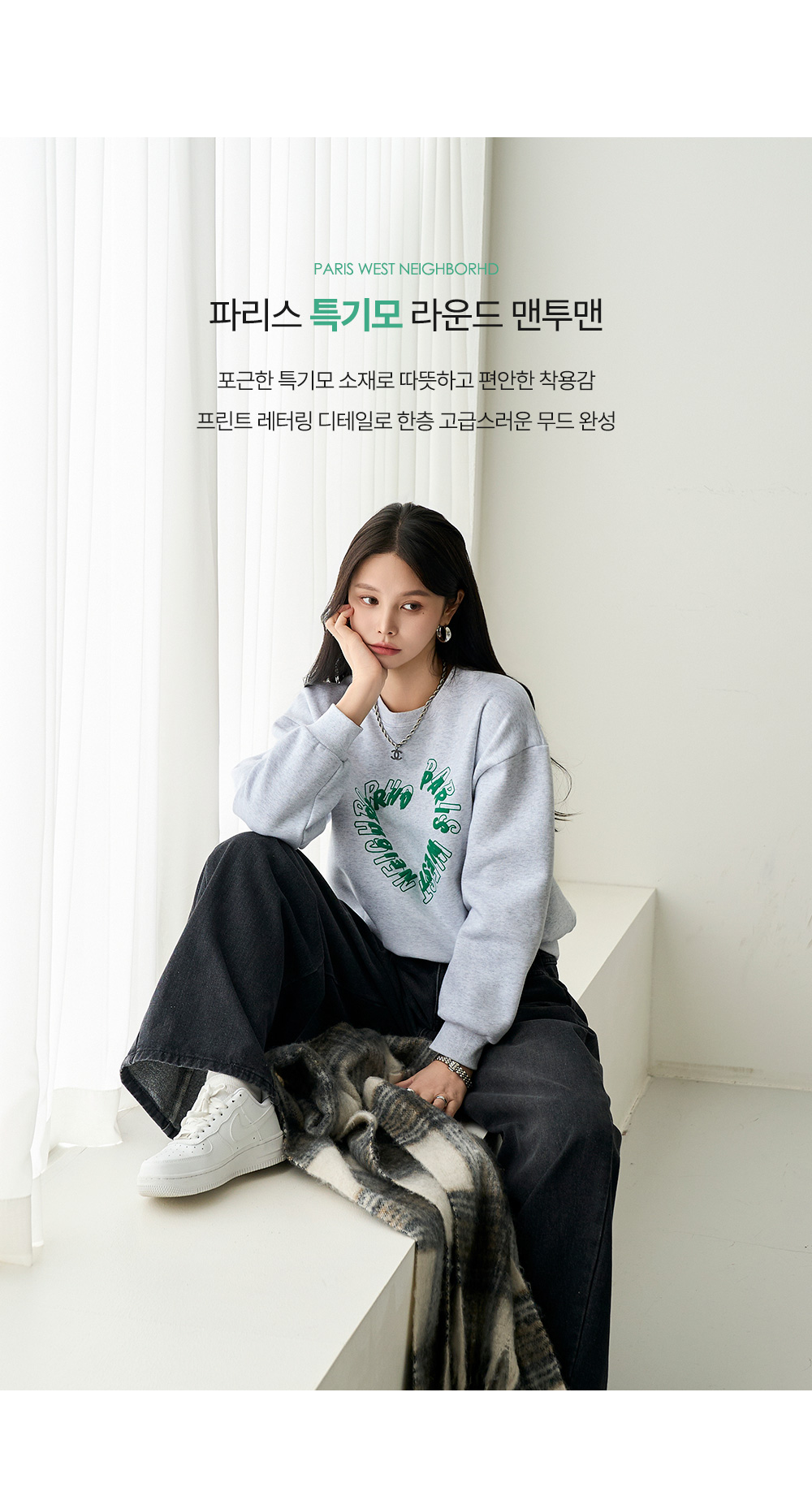 - 드롭된 숄더라인 전체적으로 루즈한 폼으로 편안한 착용감