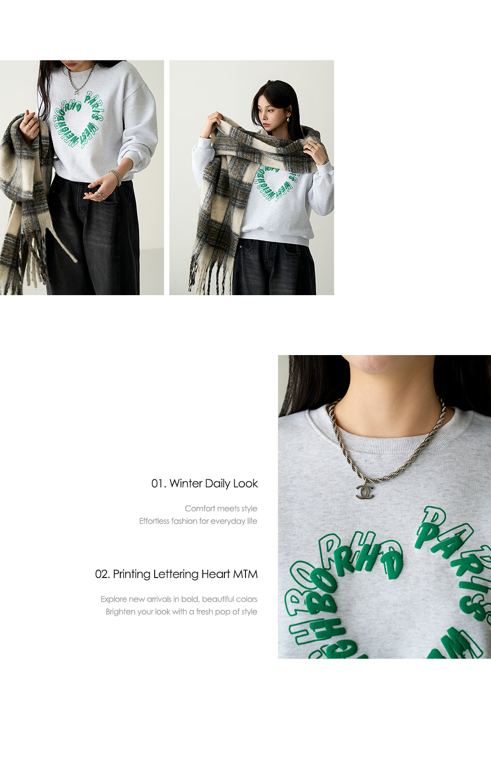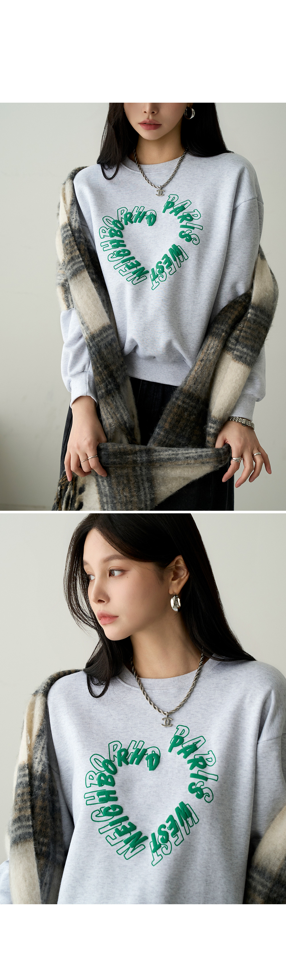 - 프론트 레터링 자수디테일이 하트모양으로