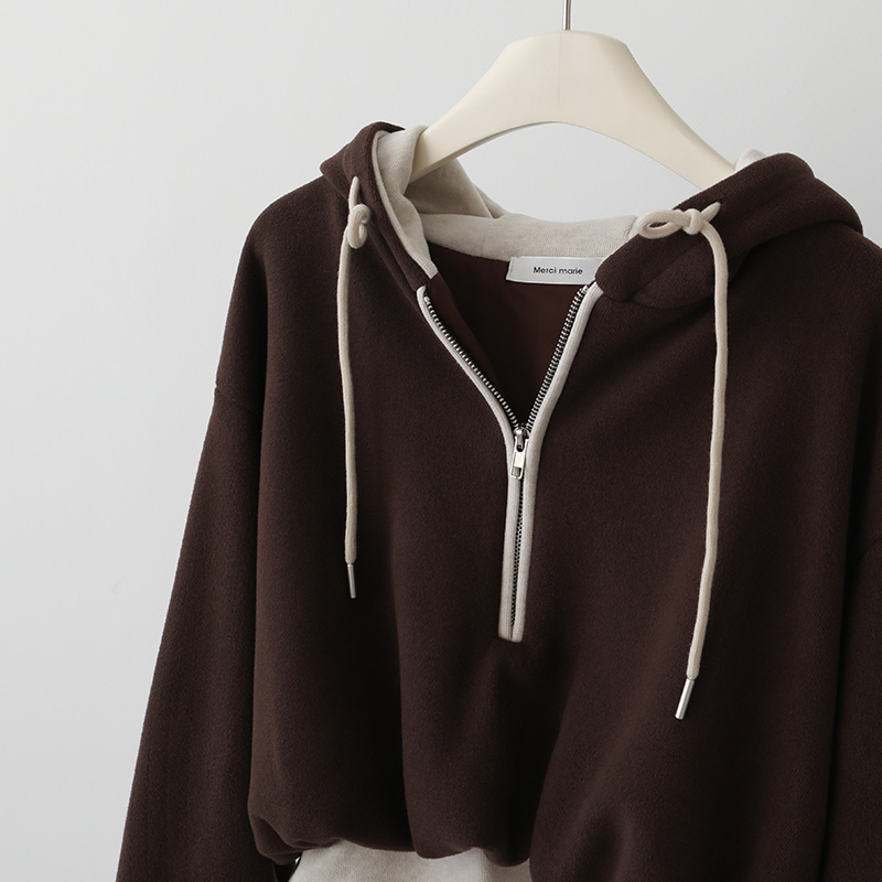 - 반집업 디자인에 후드 디테일이 더해져 다양한 무드로 활용 가능