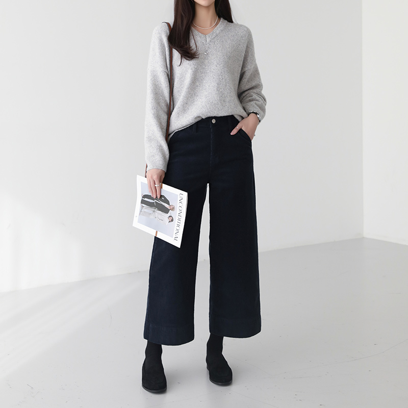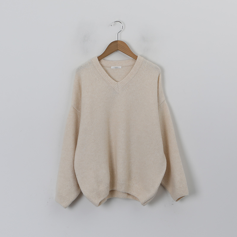 - 깊지 않은 브이넥 라인과 탄탄한 립 조직 넥