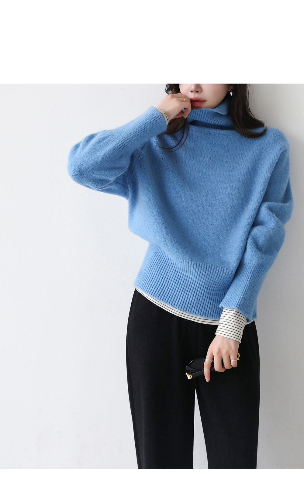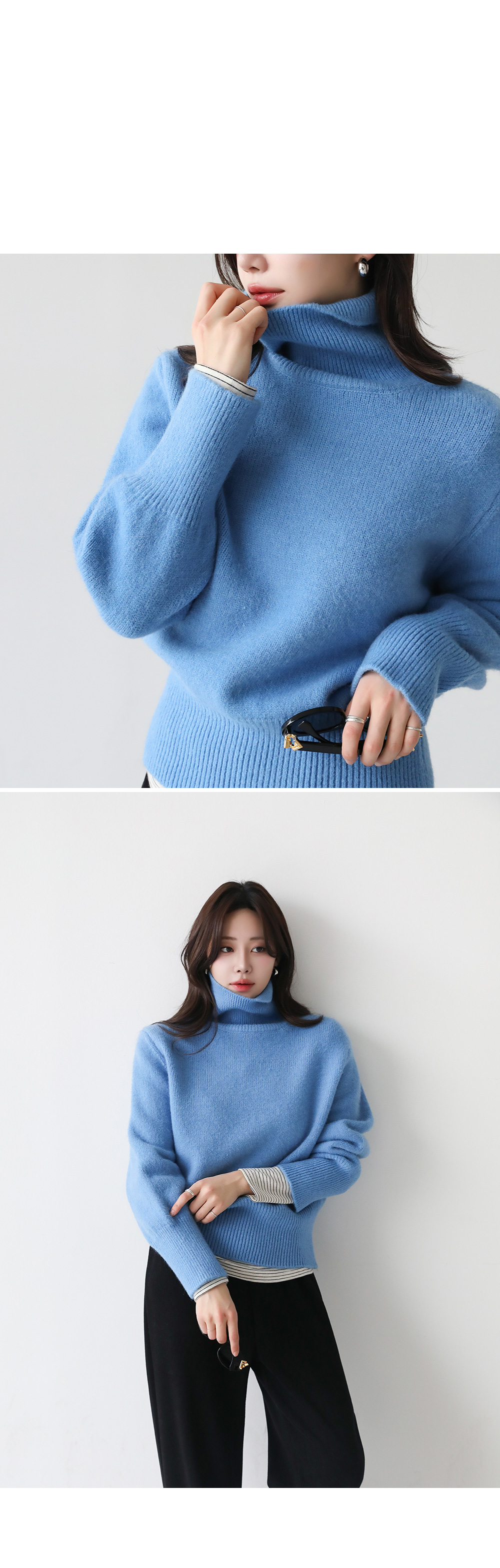 - 터틀넥 부분이 답답하지 않고 착용 시 편안함 유지됨