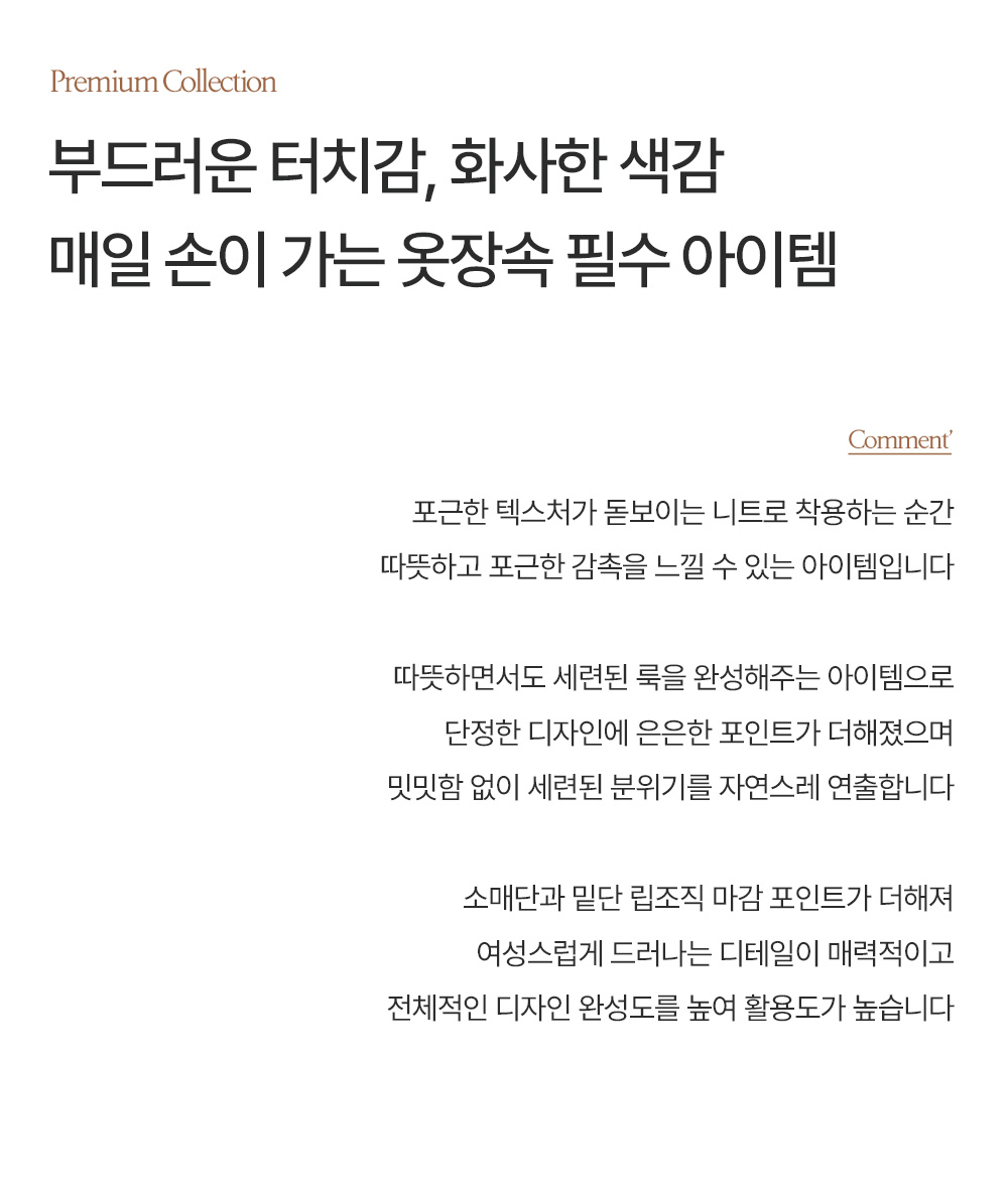 - 포근한 니트 조직으로 부드럽고 따뜻한 착용감