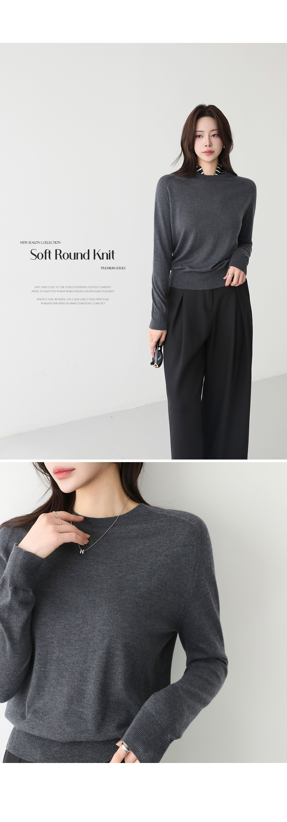 - 가볍고 부드러운 원단감의 기본 니트