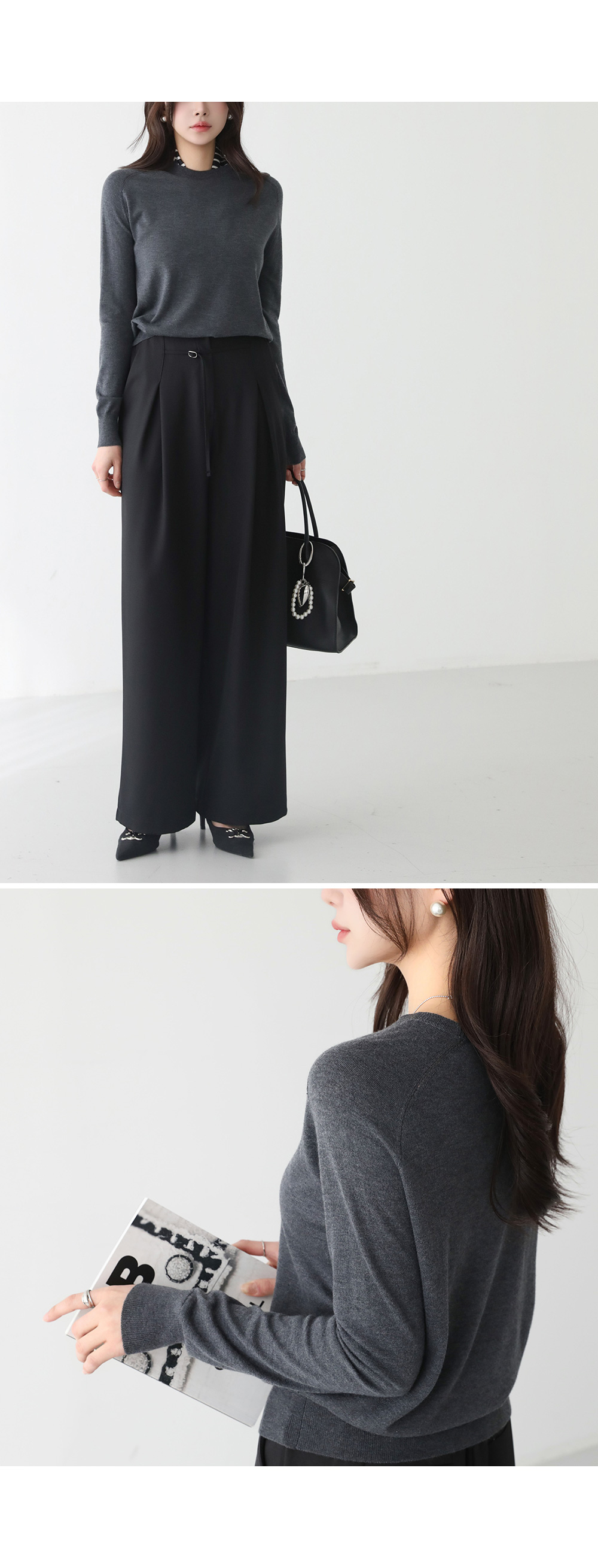 - 손등 덮는 롱한 소매 기장으로 여리여리한 무드 연출