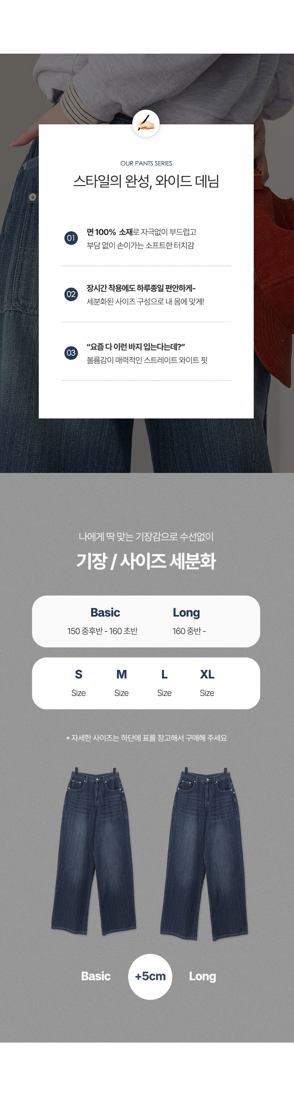 - 잔잔한 세로 스트라이프 워싱이 더해져 트렌디한 무드