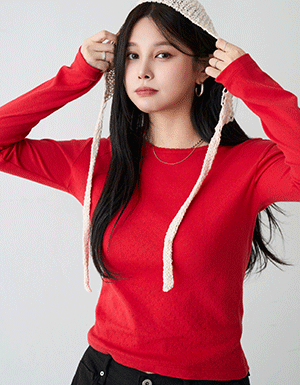 아일렛 펀칭 슬림 긴팔 티셔츠 #112058