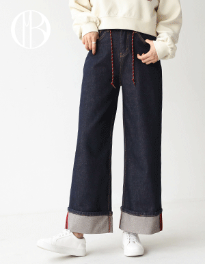 [WOW 팬츠] 하이웨스트 리본 와이드 데님 #710322