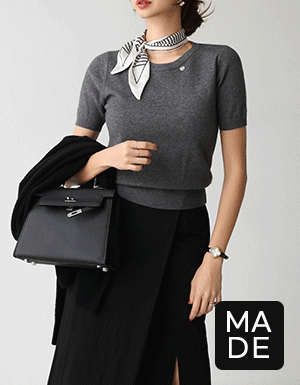자체제작/ 스카프 세트 반팔 울혼방 니트 티셔츠 #111618