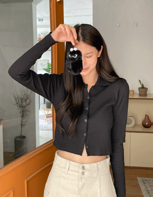 버피 골지 브이넥 세미크롭 가디건 #22614