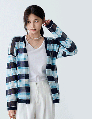 세미크롭 아크릴 스트라이프 가디건 #22610