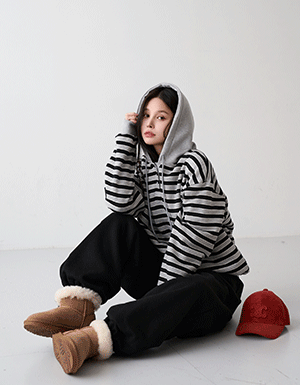 단가라 버튼 스트링 기모 후드 티셔츠 #112757