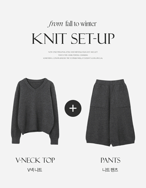 브이넥 니트 & 8부 와이드 팬츠 세트 #96409