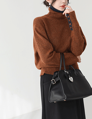 [메르시마리에] 소매 패치 반폴라 잔골지 니트 #112747