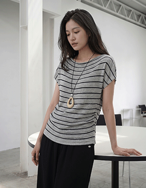 [메르시마리에] 레이온 혼방 골지 트임 티#112852
