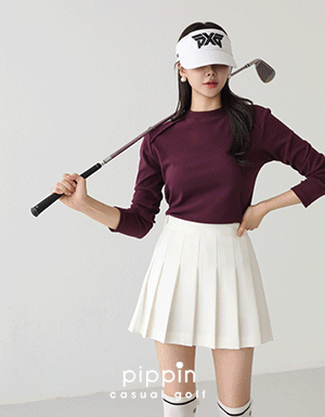 [패턴퀸 GOLF] 브이넥 맨투맨 플리츠 스커트 세트 #96321