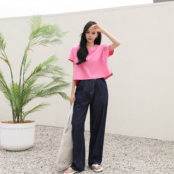 반팔과 밑단직선으로 깔끔한 실루엣을 완성했어요