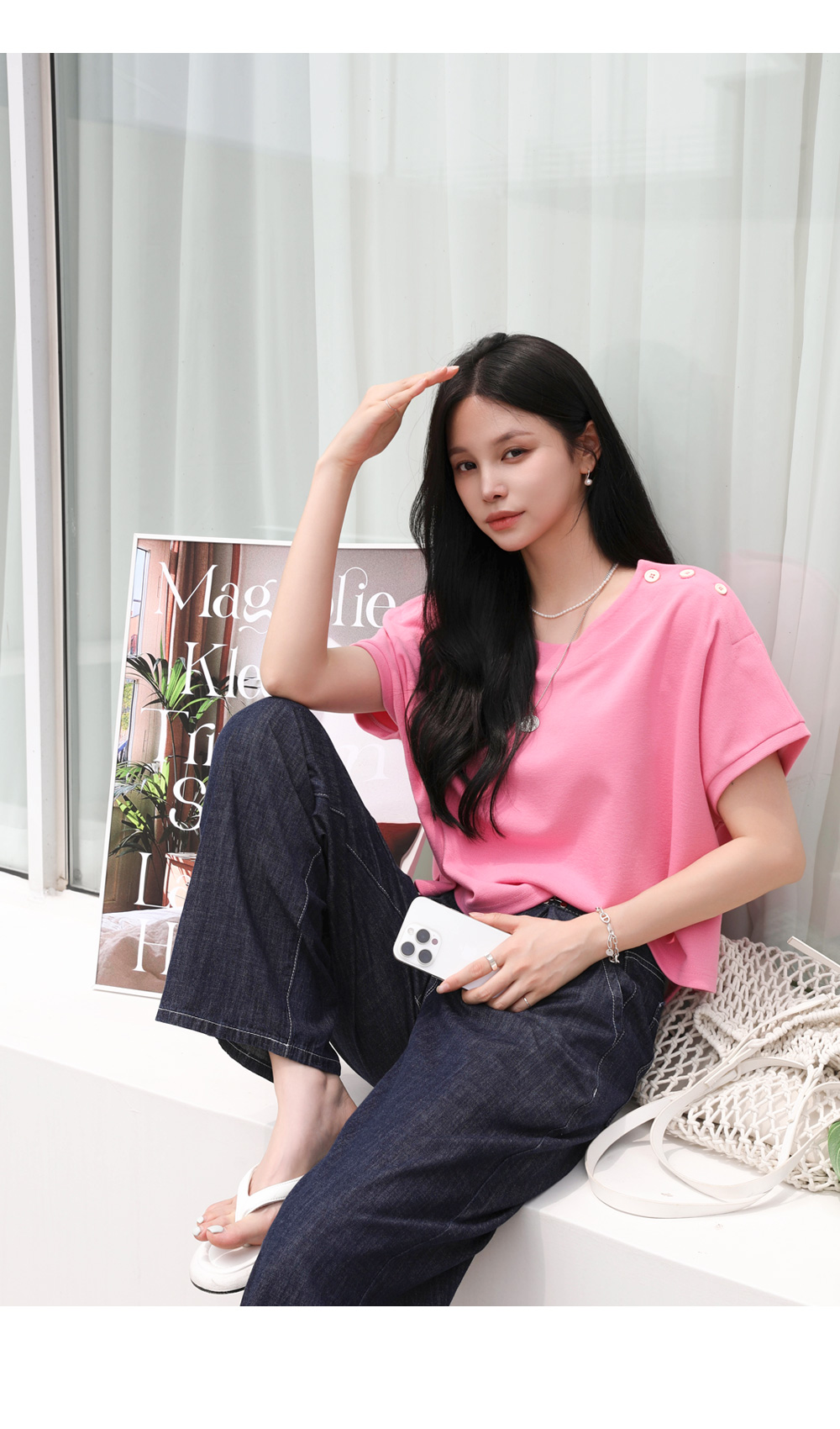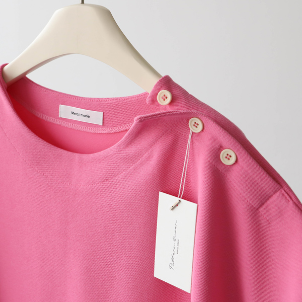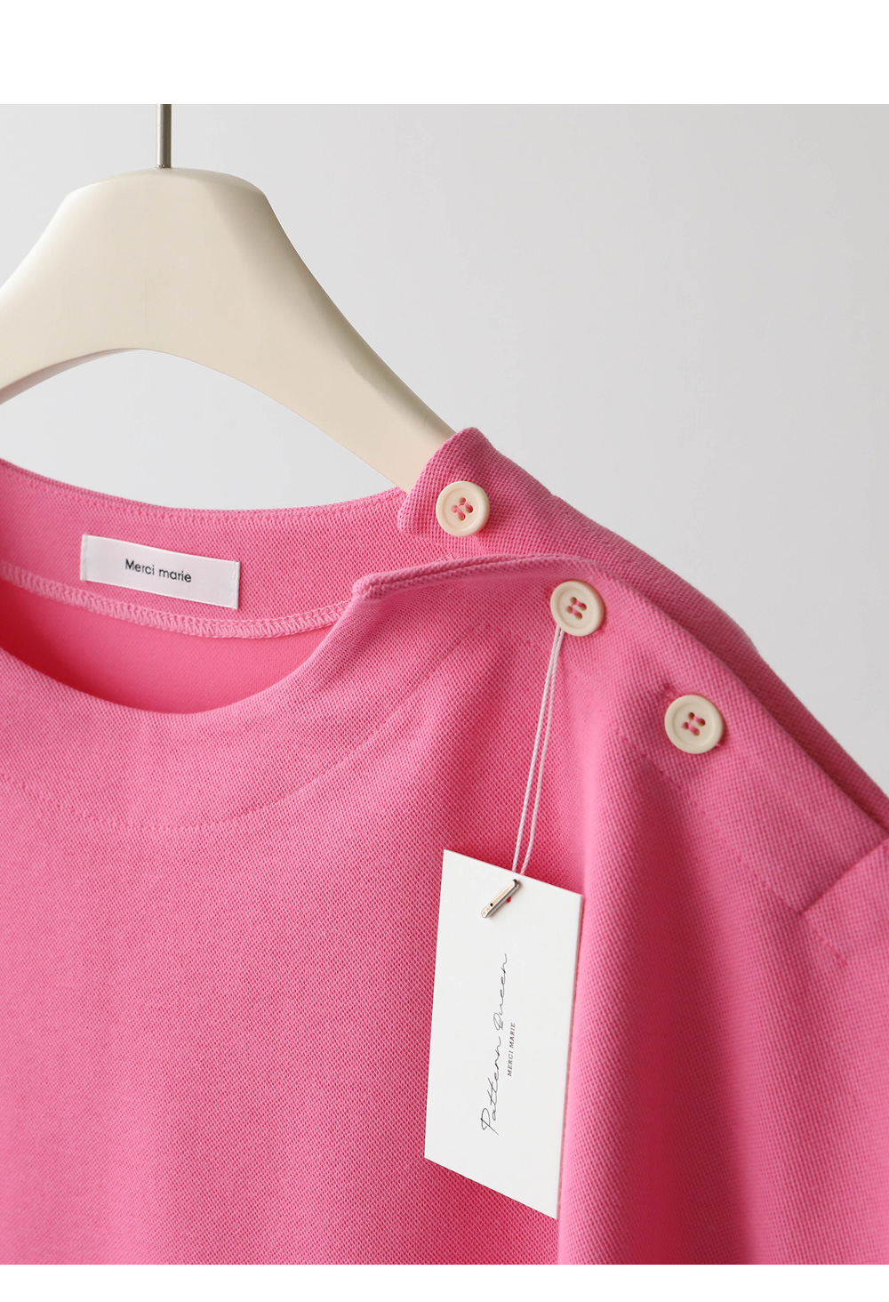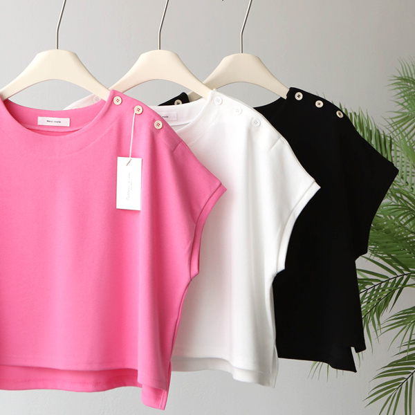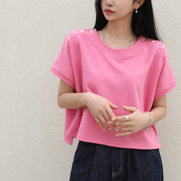 라운드넥으로 깔끔하면서도 어깨단추가 포인트를 주는 디자인~