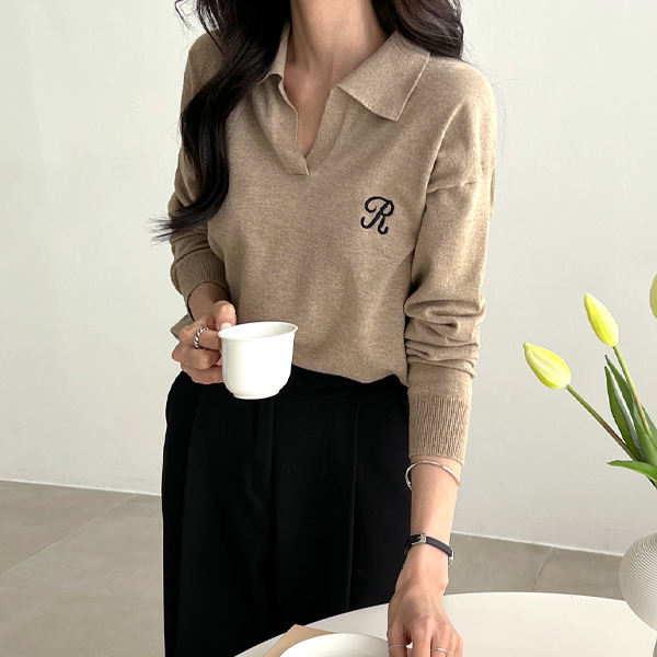오픈 카라 디자인과 감각적인 알파벳 자수로
