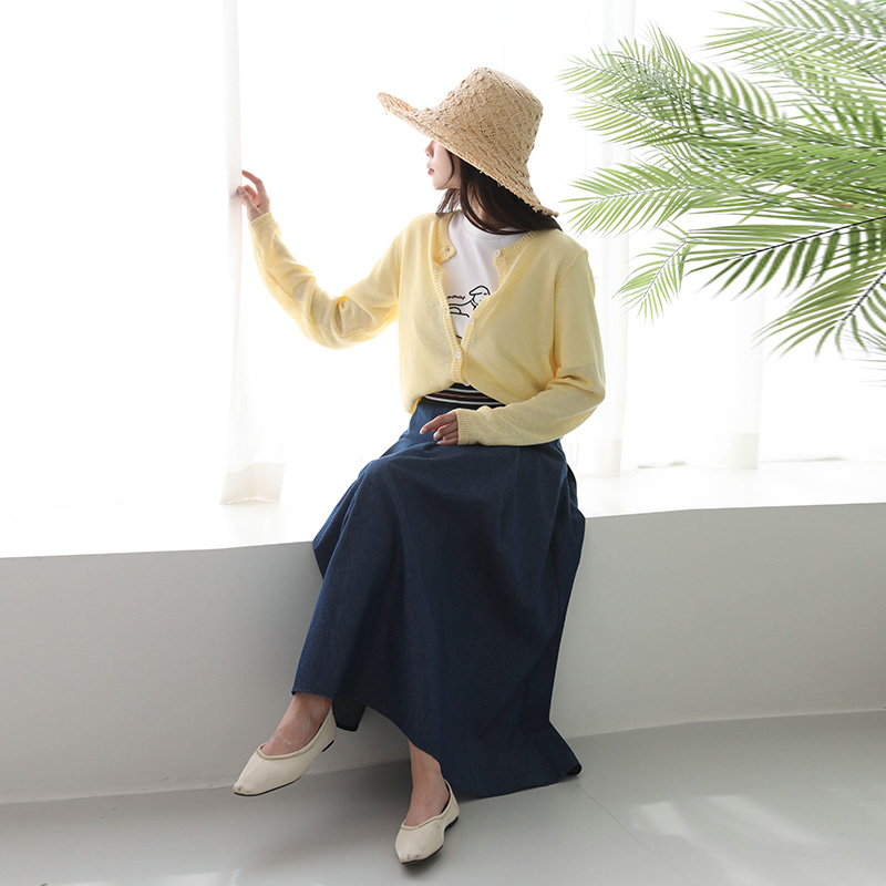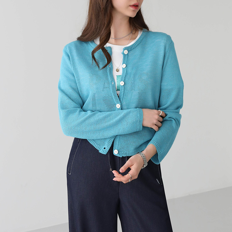 - 성글한 소재로 여름까지 입을 수 있는 시원한 소재감의 가디건