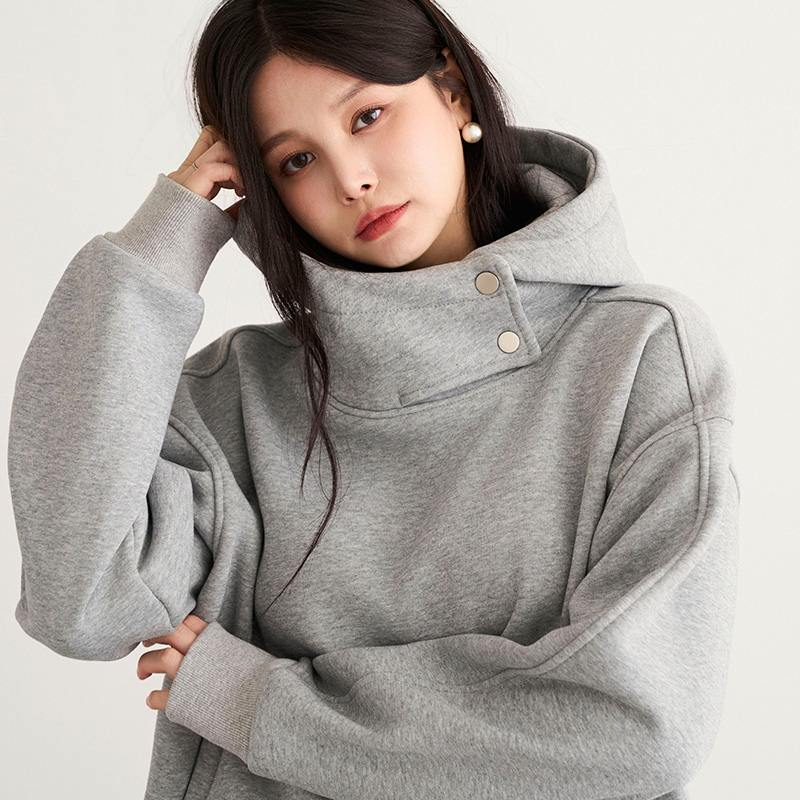 하이넥과 후드의 조화로 스타일과 보온성을 동시에 잡았어요