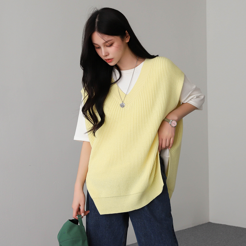 트임 오버핏 니트 조끼 #111215