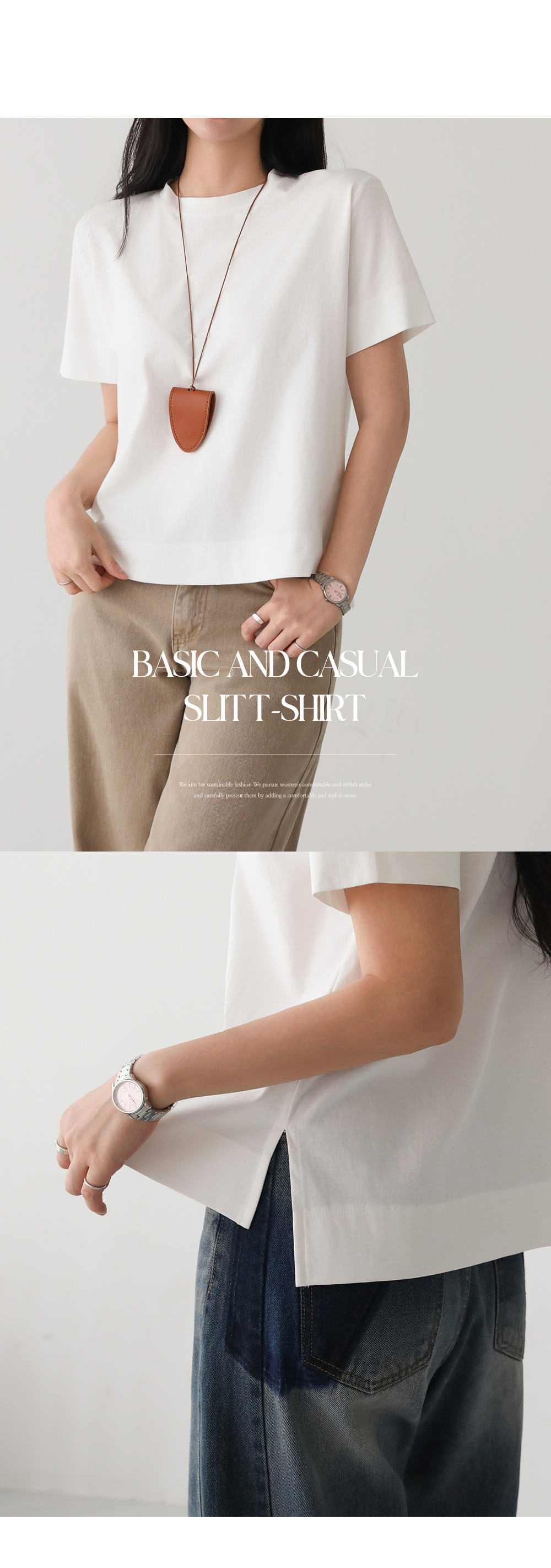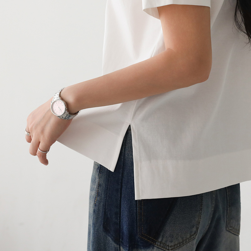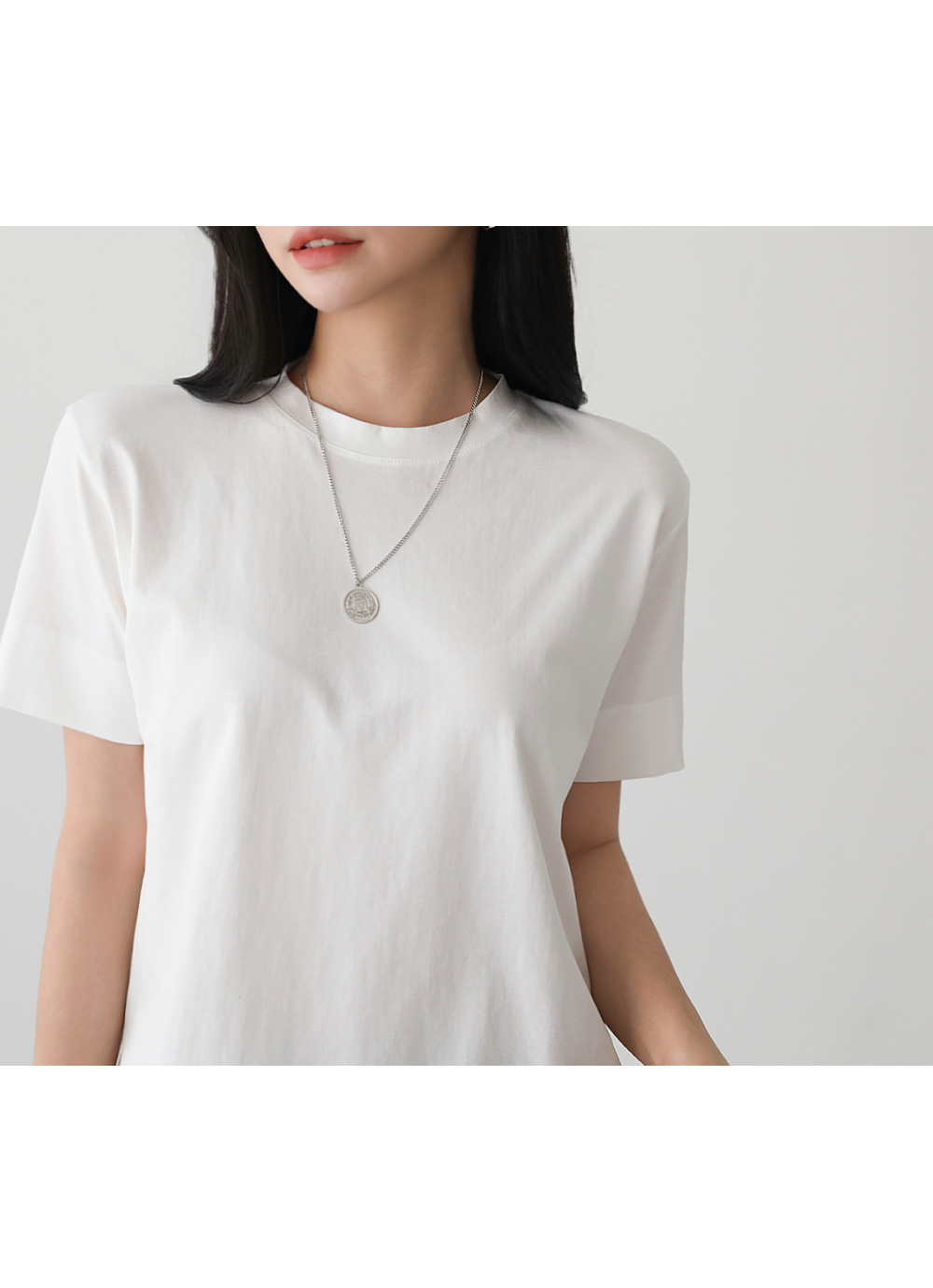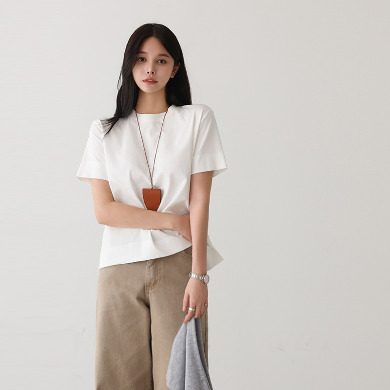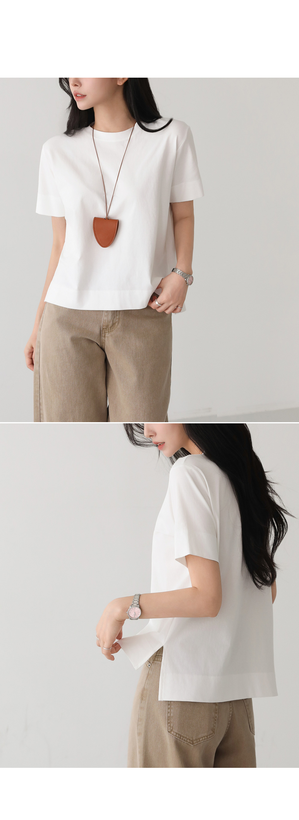- 심플한 디자인으로 어떤 하의와도 쉽게 매치 가능한 데일리한 베이직 반팔 티셔츠